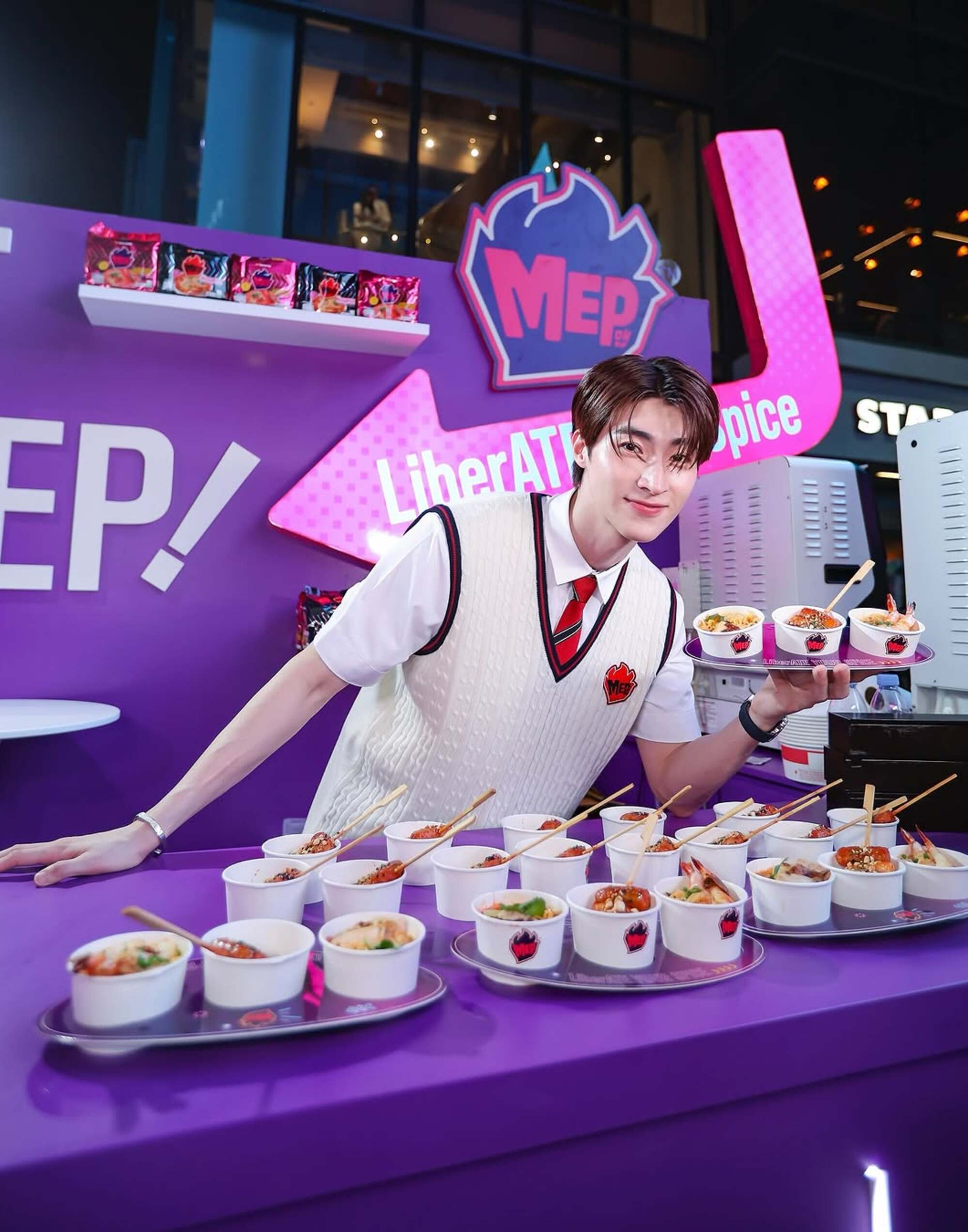 the 3-day launch transformed siam square one into a neon playground with six immersive zones, from a cooking station and 7-eleven pop-ups to photo ops and k-pop performances. fans met idols, played, and tasted mep firsthand. the momentum carried on nationwide with over 100+ kol reviews, expanding retail displays, and a weekly tv series that kept the hype hot